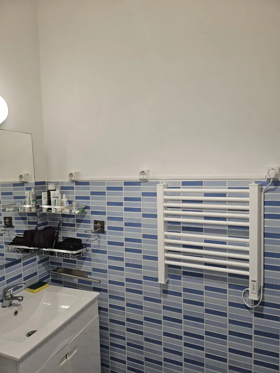 Elle dispose aussi d'un radiateur sèche serviettes programmable (2h et 4h).